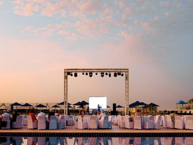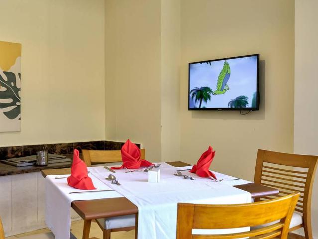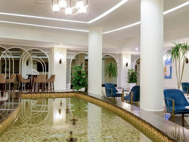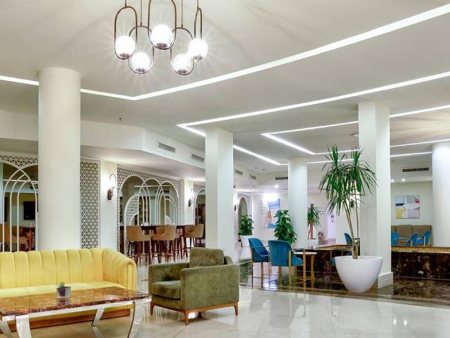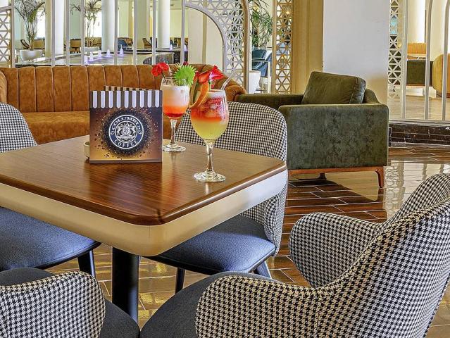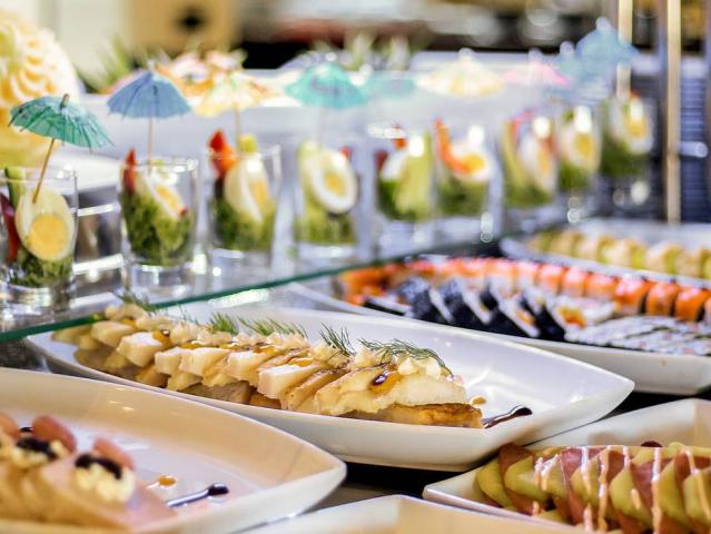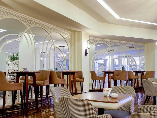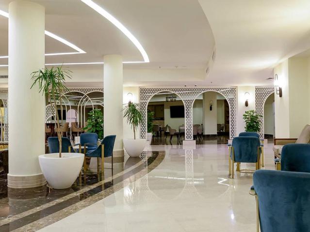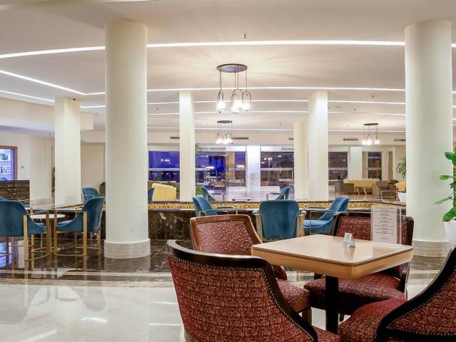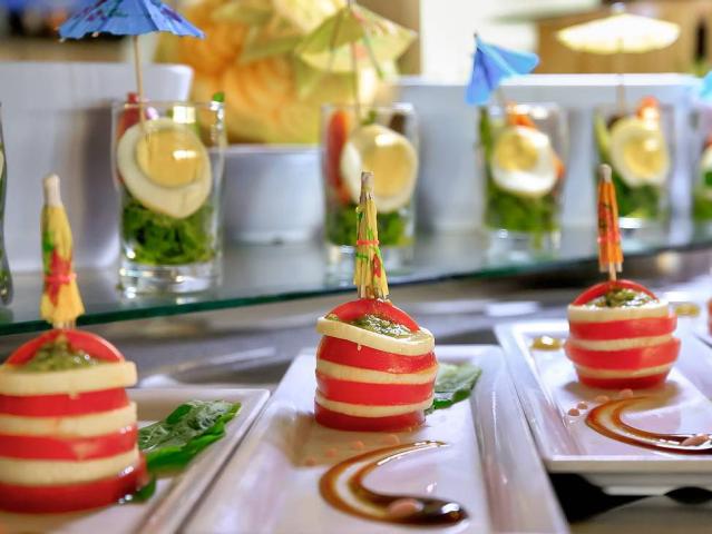 All Inclusive: časná snídaně (05:00-07:00), snídaně (07:00-10:00), oběd (12:30-14:30), večeře (18:30-21:30), pozdní večeře (21:00-00:00), podávané formou bufetu v hlavní restauraci. Občerstvení ve food court baru (12:30-17:00). Bezplatné místní nealkoholické a alkoholické nápoje se podávají v určených barech od 10:00-24:00. All inclusive nezahrnuje čerstvé ovocné šťávy, nápoje v lahvích a produkty z minibaru. Hotel si vyhrazuje právo na změnu rozsahu služeb zahrnutých do formule all inclusive (např. časy podávání).